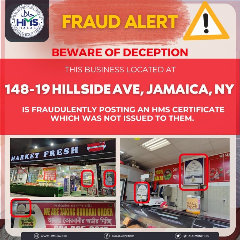 Fraud Alert Beware of Deception The business Halal Super Market located at Lat...
