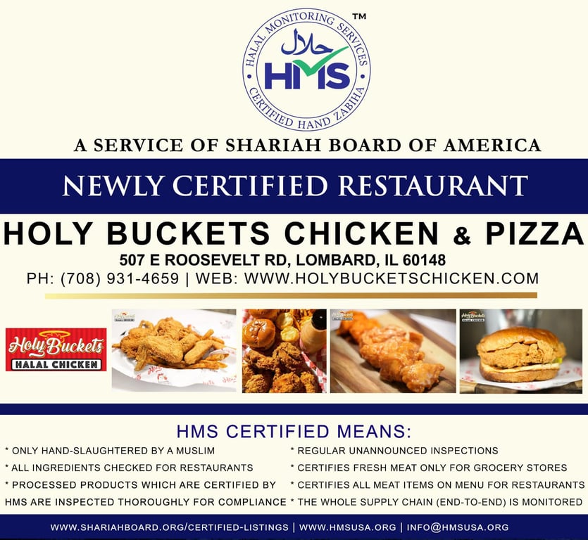 HMS has Certified Holy Buckets Chicken, Lobmard, IL as of December 13, 2024.