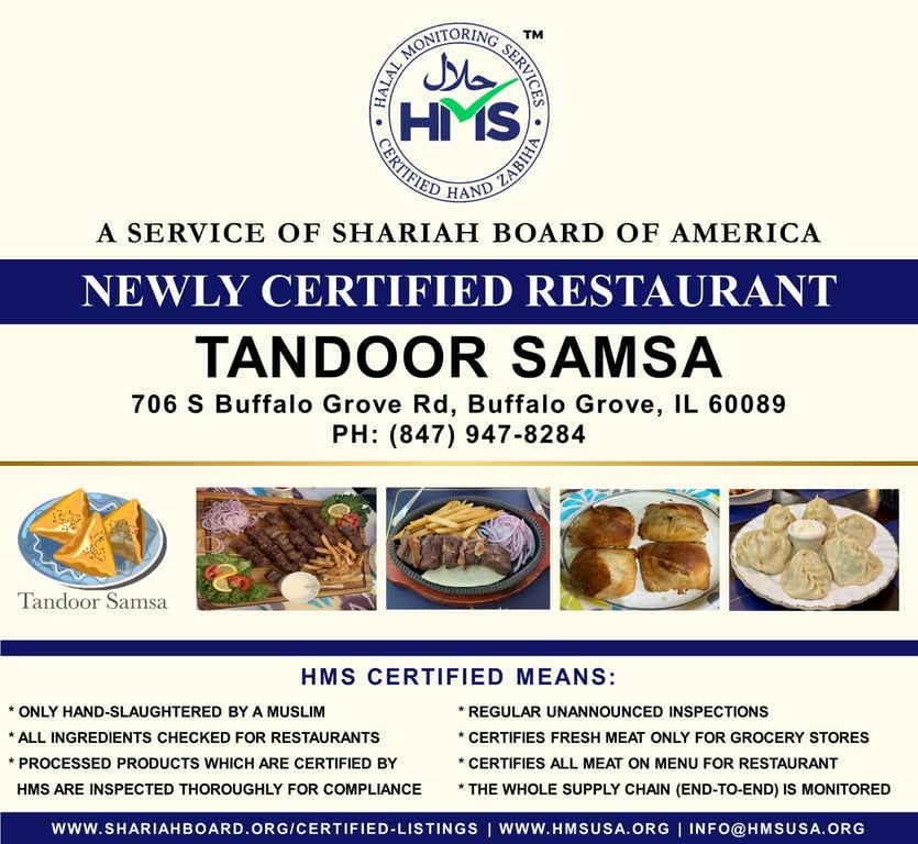 HMS has Certified Tandoor Samsa, Buffalo Grove, IL as of April 17, 2025.